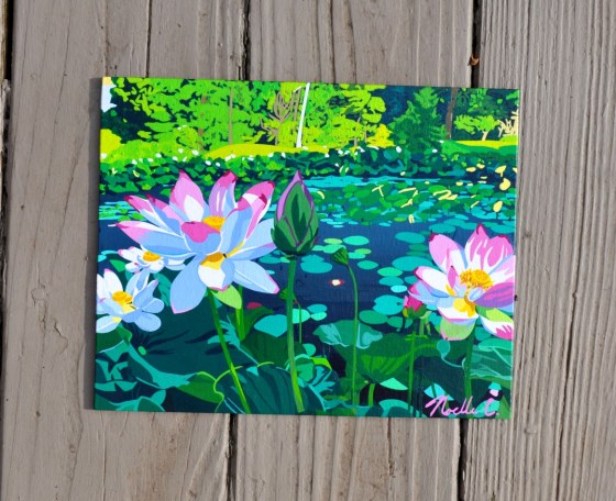 Price: $55.00 + Shipping Size: 11″ x 14″ Medium: Acrylic, gouache Materials: Acrylic, gouache, canvas