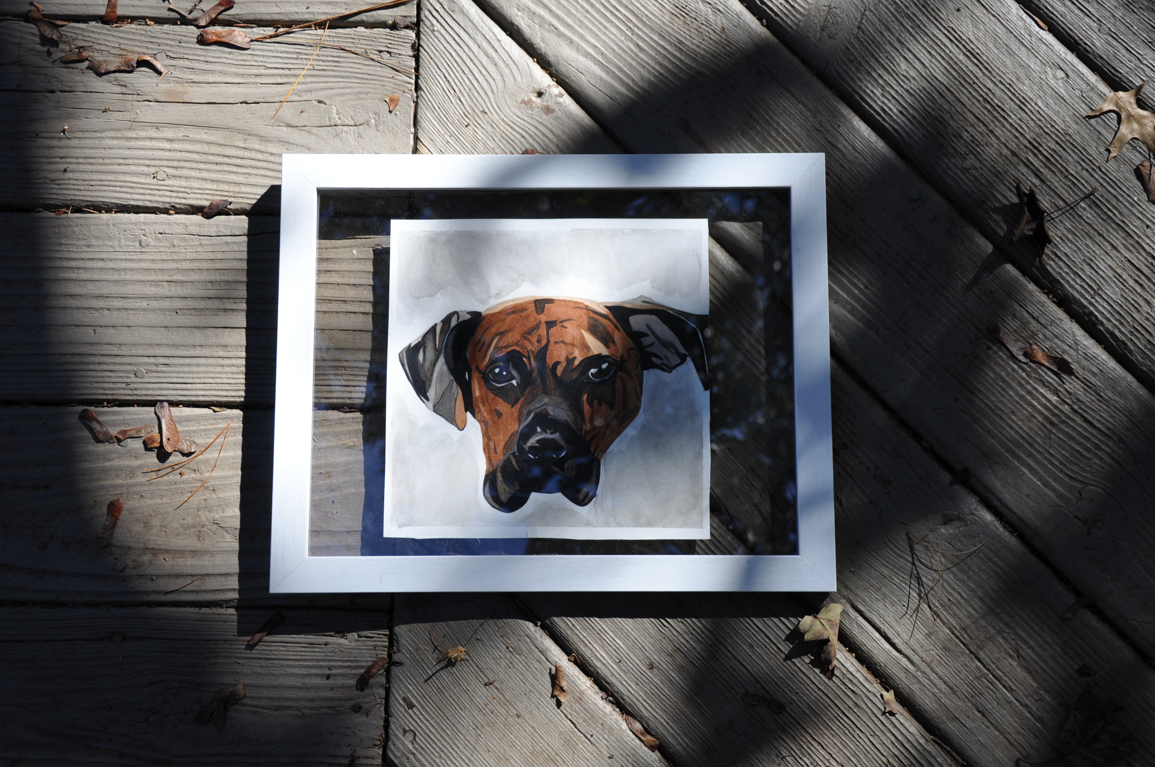 My first attempt to make a more detailed watercolor. Subject = my dog Landon.