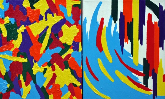 Abstract diptych. Price: $15.00 + Shipping Size: 8″ x 10″ Medium: Acrylic Materials: Acrylic, canvas