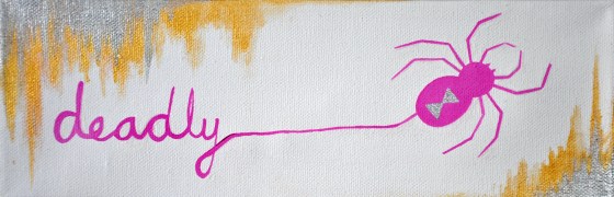 Deadly Spider painting. Price: $15.00 + Shipping Size: 4″ x 12″ Medium: Acrylic Materials: Acrylic, canvas